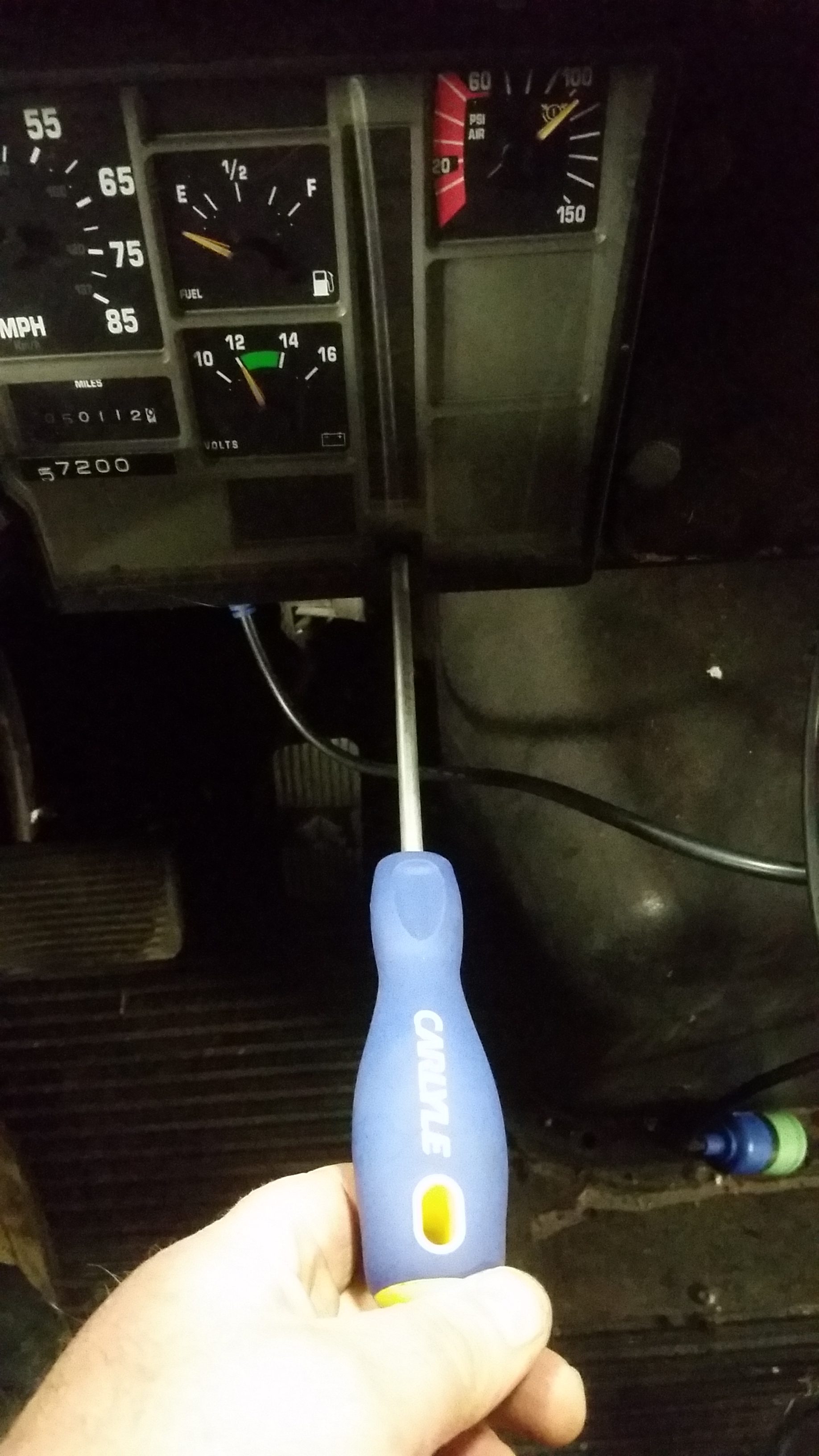 Disconnect the three wire plugs from the back of the instrument cluster and if you have air brakes or air ride you will need to disconnect the air lines from the air gauges. This will be a tight fit to get your hands in there but it can be done. Make sure to mark the wires and air hoses so you know exactly where they came from. The wires should only plug back into one spot but the air lines can be mixed up very easy.