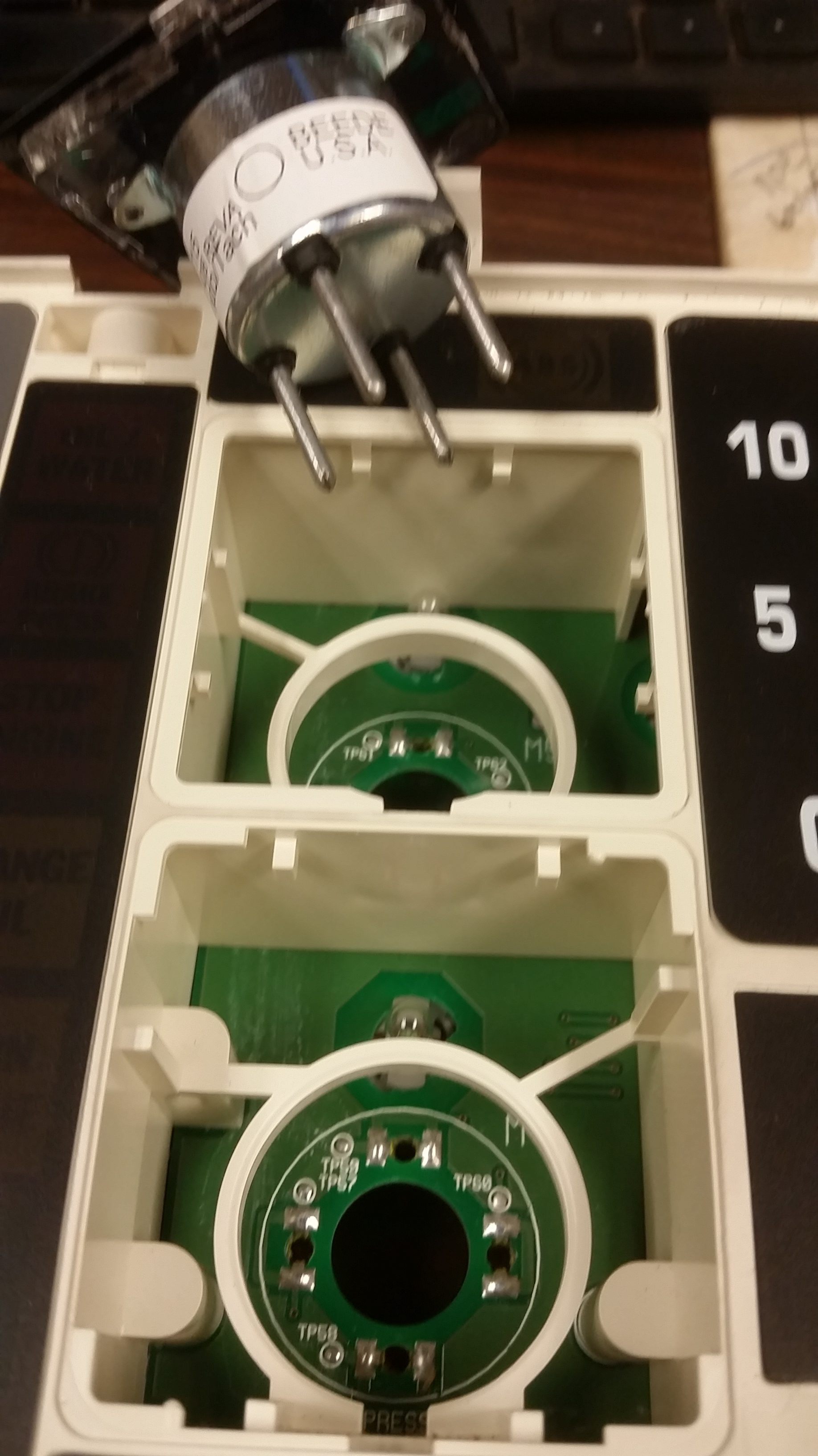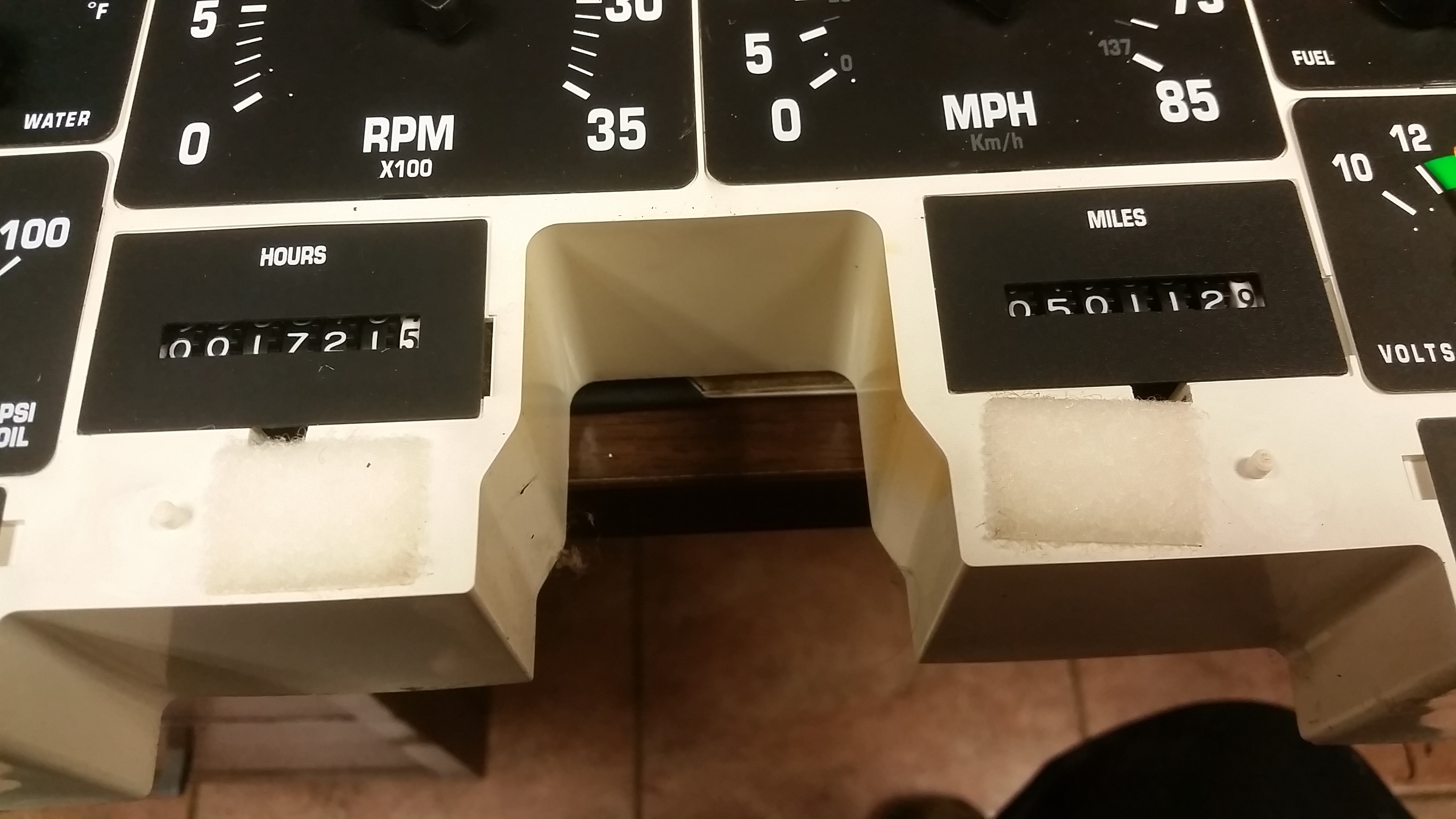 Now that the front bezel is off, you will need to remove the following gauges: Oil Pressure, Temperature, RPM, MPH, Fuel, and Volt gauges. If you look on the back side of the instrument cluster opposite of the front of the gauges you will see a half inch size hole right in the middle of the circuit board. Use a small round object and push the gauge out and through the top of the instrument cluster. Sometimes the black gauge covers that have the numbers on them will come loose and will need tacked back down in place with a dab of super glue. It doesn’t take much to keep it in place. Do not remove the needles from the step motors. Doing so will cause the needles to be in the wrong spots. Set the gauges aside in a safe spot being careful not to jar them around. Remember where each gauge goes so you don’t get them mixed up when reinstalling them. Sometimes it can be helpful to take a picture with your phone so you make sure you return them to their rightful spot.
