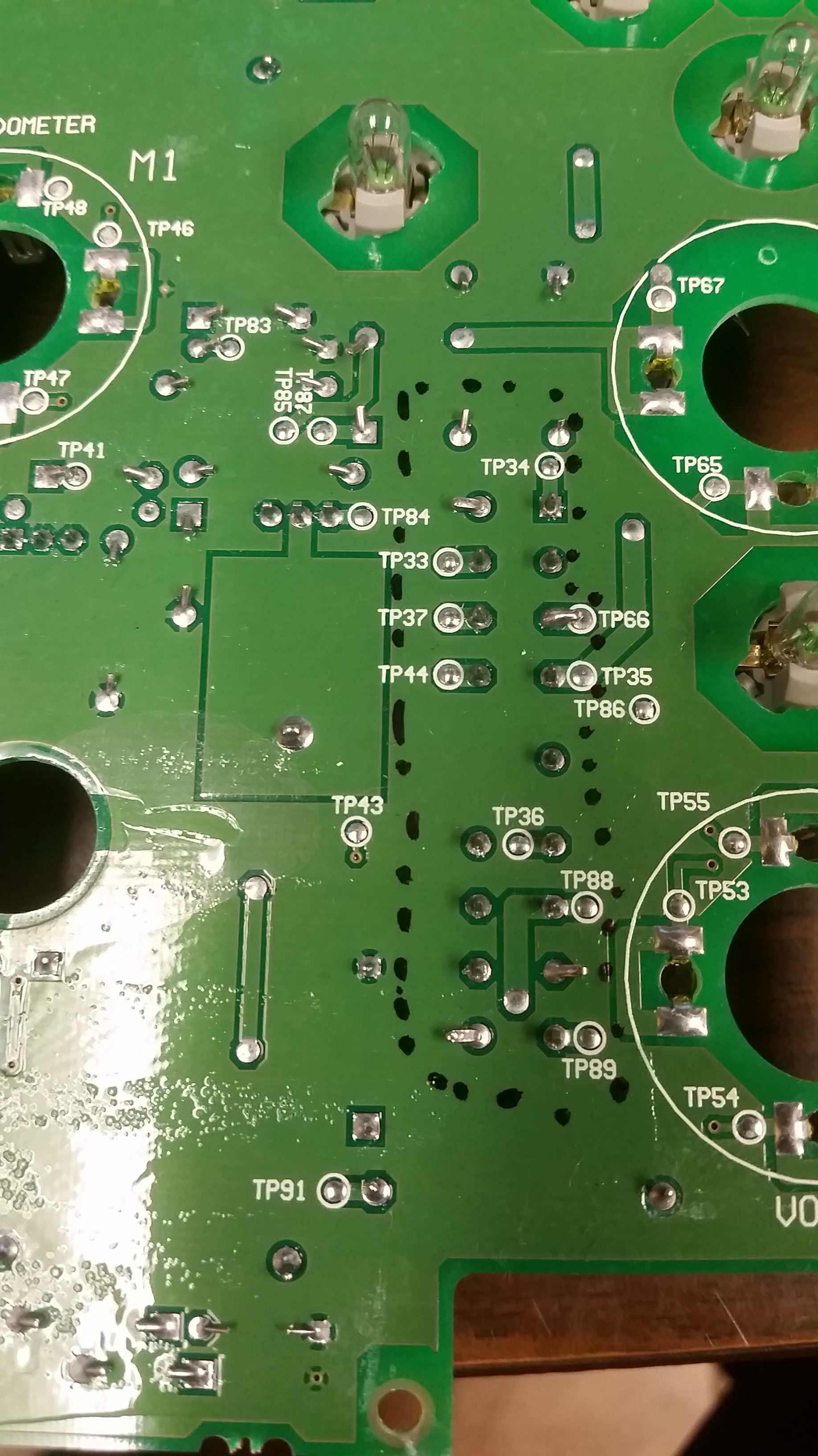 If you have ever priced out a new instrument cluster than you probably had to be picked up off the floor after hearing the price. The whole cluster can be $600 or more and just the printed circuit board is over $400. For most of us I would imagine that this is just not an acceptable price to pay. Here is a fix that I have learned after researching this well known problem.